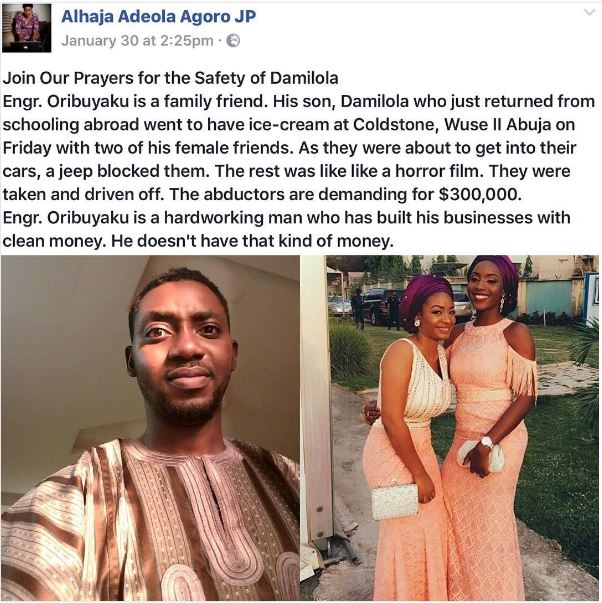Oribuyaku went missing in Abuja; those believed to be behind their