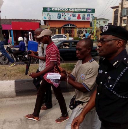 Mr. Fatai Owoseni on uniform walking with some protesters
