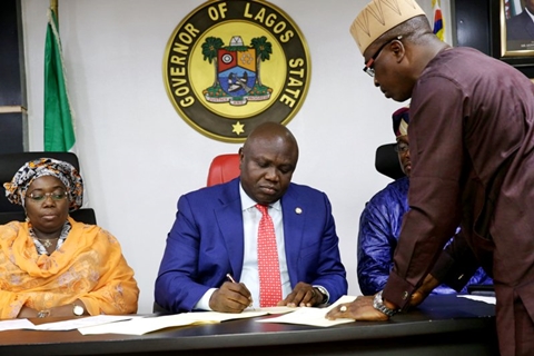Lagos State Governor, Mr Akinwunmi Ambode on Wednesday signed into law