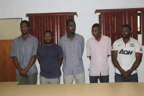 The five armed robbery suspects paraded by the police