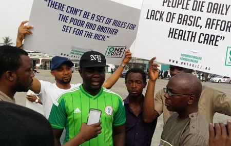 #istandwithnigeria protest are seen listening with interest as the
