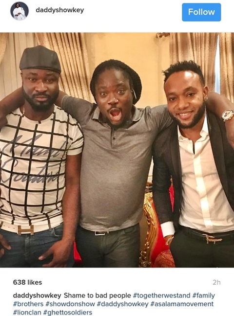 Daddy Showkey posted the photo with the caption, “Shame to bad people…Together we stand.”
