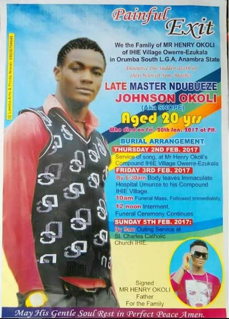 The young man identified as Ndubueze Johnson Okoli will be laid to