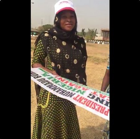 @Yarkafanchan showed one of the women carrying a placard which read, ‘We believe in President Muhammadu Buhari making Nigeria great again’ as they narrated how they found themselves at the place.