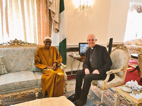and wrote; "Very pleased to welcome the Most Revd and Rt Hon @JustinWelby, Archbishop of Canterbury, to Abuja House this afternoon."