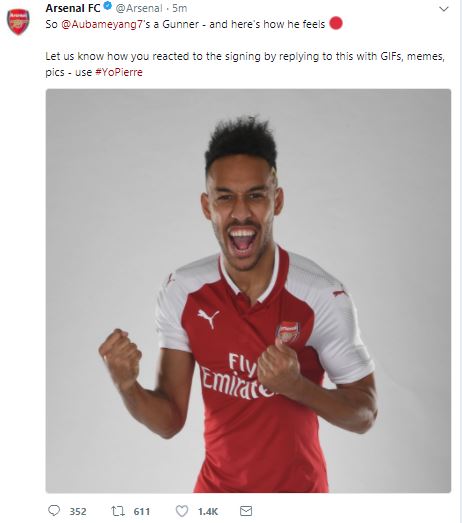 Auba’s squad number will be confirmed shortly.