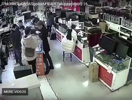 The moment inside the electronics shop when the phone exploded