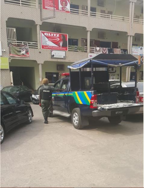 these police n mopol followed their Oga's wife to make her hair in poly