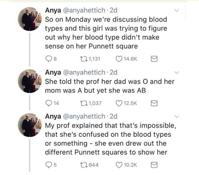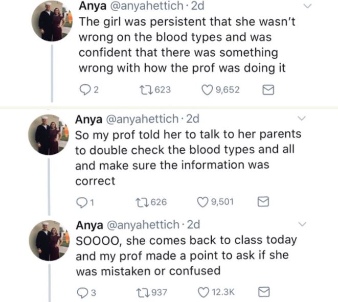 class, after her professor discussed about Blood Group.
