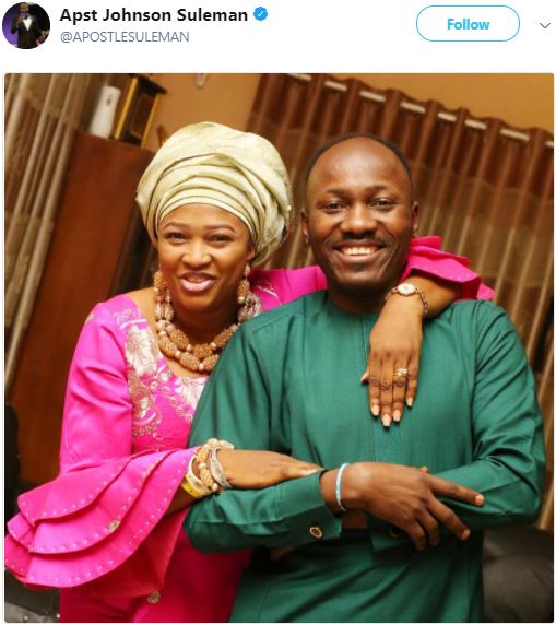 Popular Nigerian cleric, Apostle Johnson Suleman, has shared a lovely photo of himself and his wife on social media.